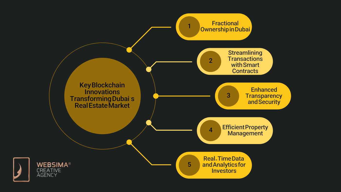 Blockchain’s role in Dubai real estate extends beyond simplifying transactions. Several innovations are in place to significantly enhance the investment landscape, making real estate in Dubai more accessible, secure, and efficient for both local and international investors.