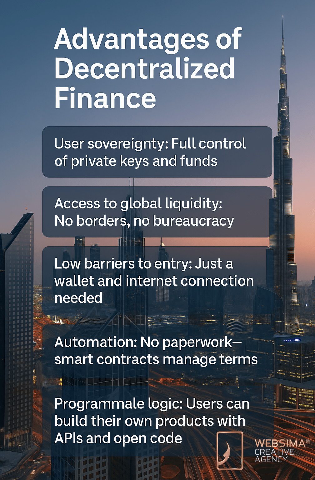 DeFi is ideal for Dubai’s tech entrepreneurs, Web3 developers, and digital-native investors.