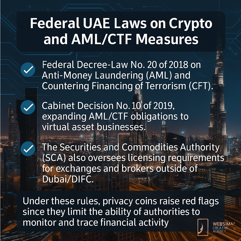 While privacy coins provide legitimate benefits such as protecting personal financial data, they also pose regulatory concerns. Governments and regulators worldwide worry about their use in illicit activities, such as money laundering, tax evasion, or terrorism financing. This tension is especially relevant in jurisdictions like the United Arab Emirates (UAE), where the crypto ecosystem is growing rapidly but under careful oversight.